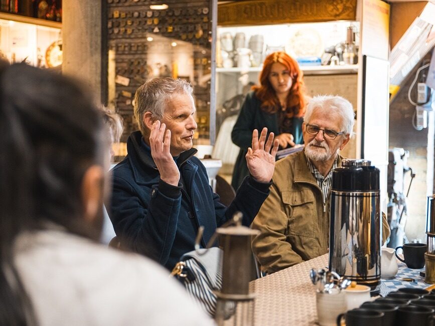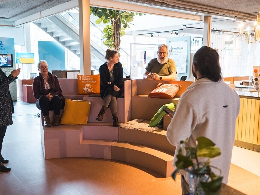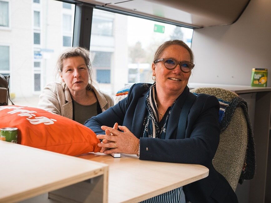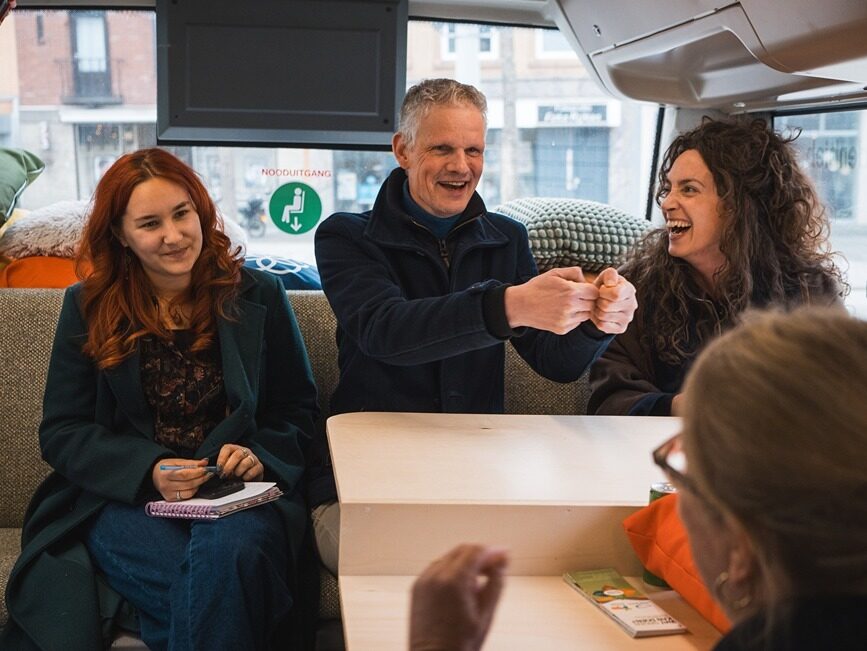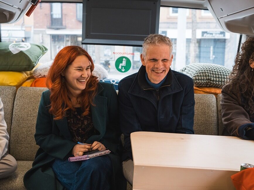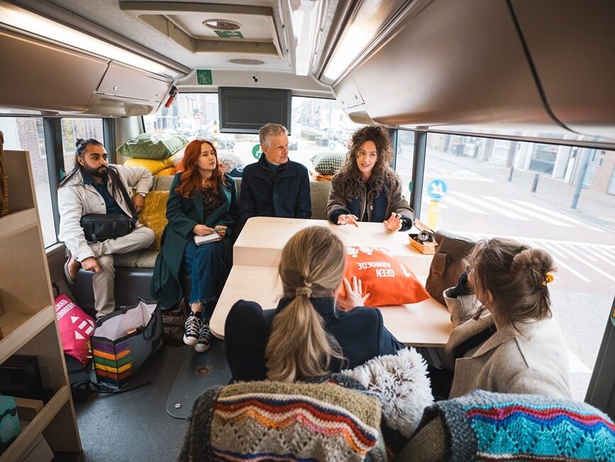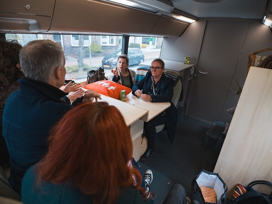 De Rollen was gevraagd een bezoek te organiseren in haar regio (Westelijke mijnstreek), met nadrukkelijk het verzoek om de dialogen over internationale- en ontwikkelingssamenwerking aan te gaan met personen die je niet gelijk zou verwachten. ‘Gewone mensen’ met échte verhalen; daar zit de inspiratie die raakt. En zo stapten afgelopen vrijdag in Geleen Saskia Wesselius en Dave van den Nieuwenhof van DGIS, de Goede Morgen bus in. De drie wethouders Ivo Tillie, Hub Schoenmakers en Rob Schwillens zwaaiden hen uit na ontvangst in Goede Morgen. Zij onderschrijven de onderliggende motivatie voor dit project: Om te luisteren naar de mensen zelf moet je erop uit trekken, investeren in ontmoetingen. Alleen zo bouwen we een toekomst die duurzaam én gedragen is.