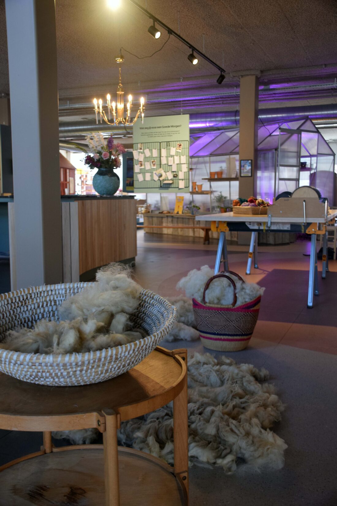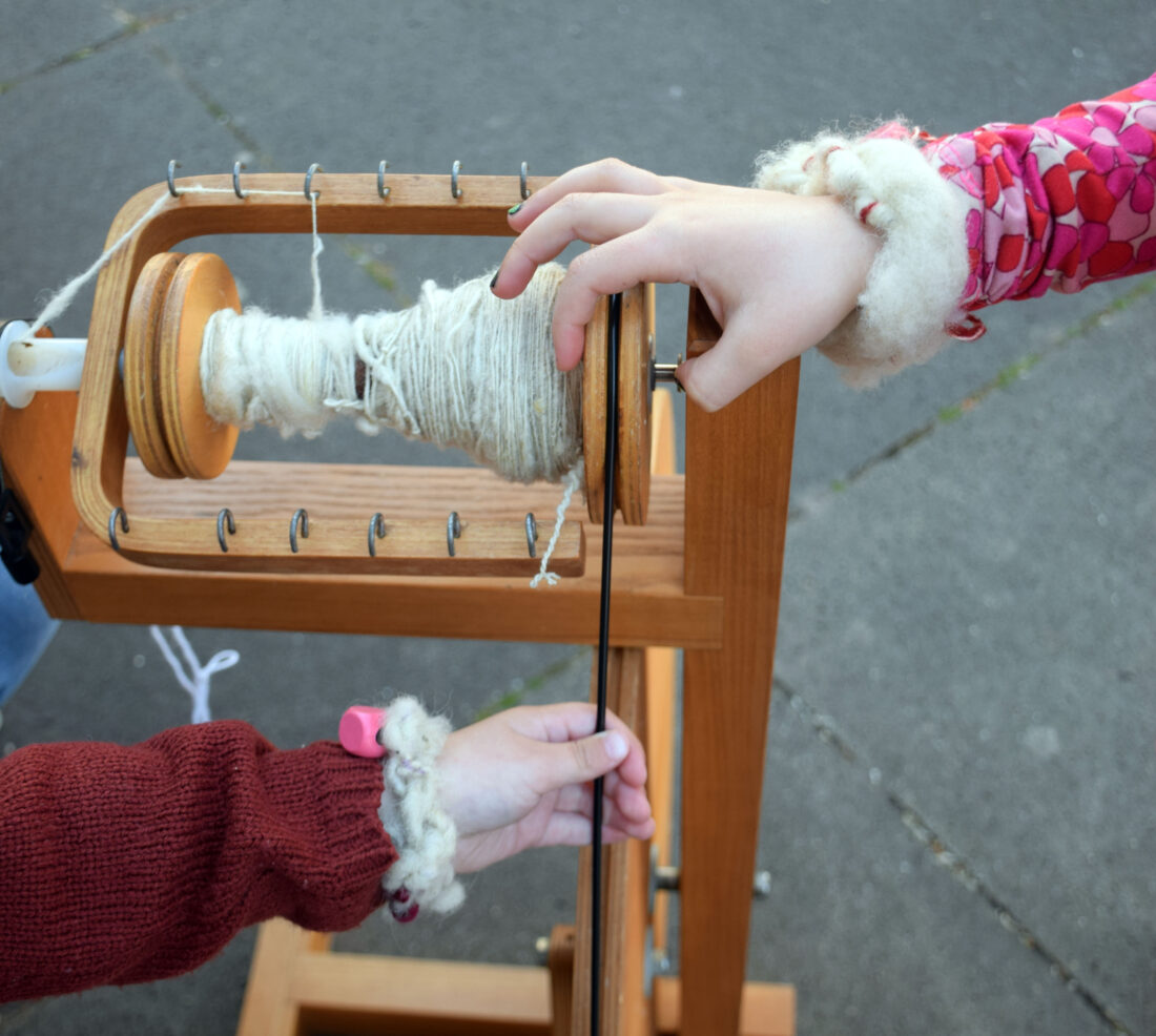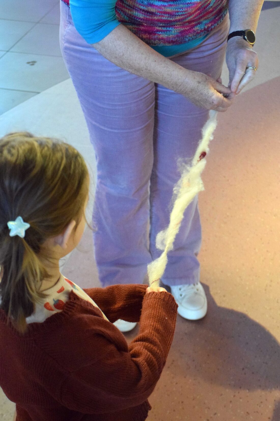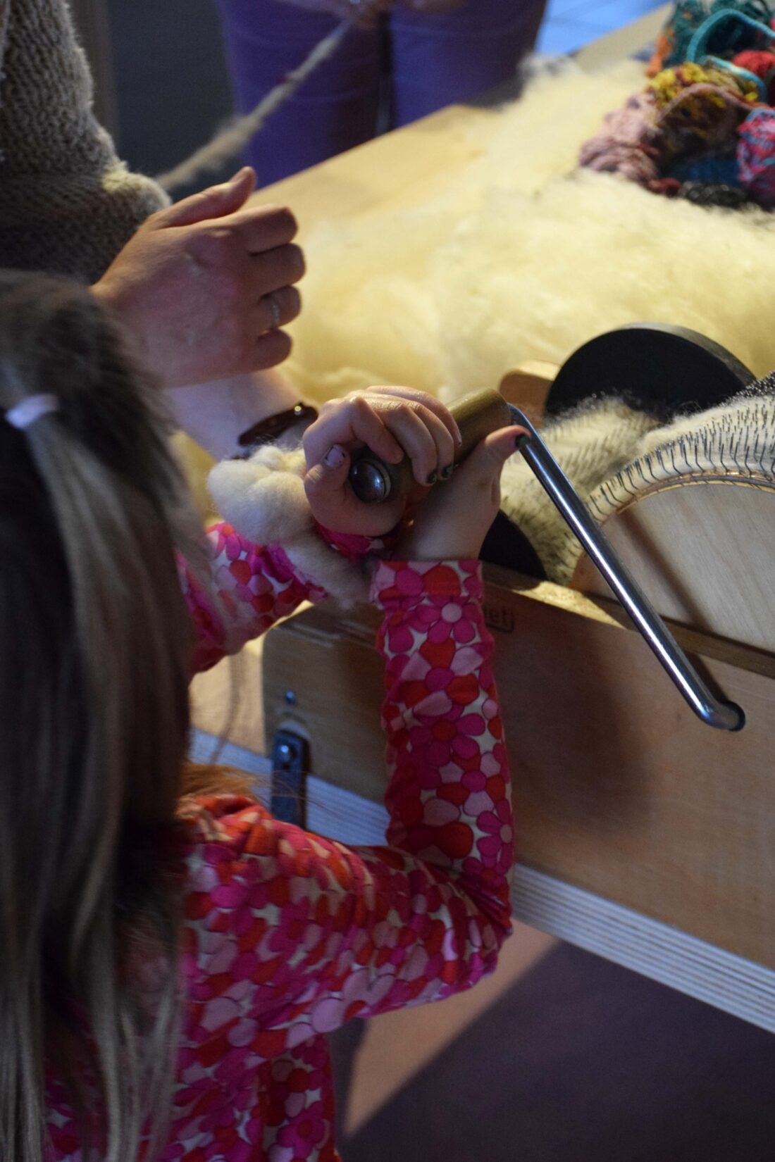 Er was (eens..) een kaardmolen, spinnenwiel en weefraam. Bezoekers kwamen kennismaken met wol door te kaarden, weven en armbandjes te draaien van echte wol. En verhalen te beluisteren over de geschiedenis en de vele toepassingen van wol. Kinderen draaiden hun eigen armbandje door het zelf te draaien van gekaarde wol en te mengen met vrolijke kleuren.