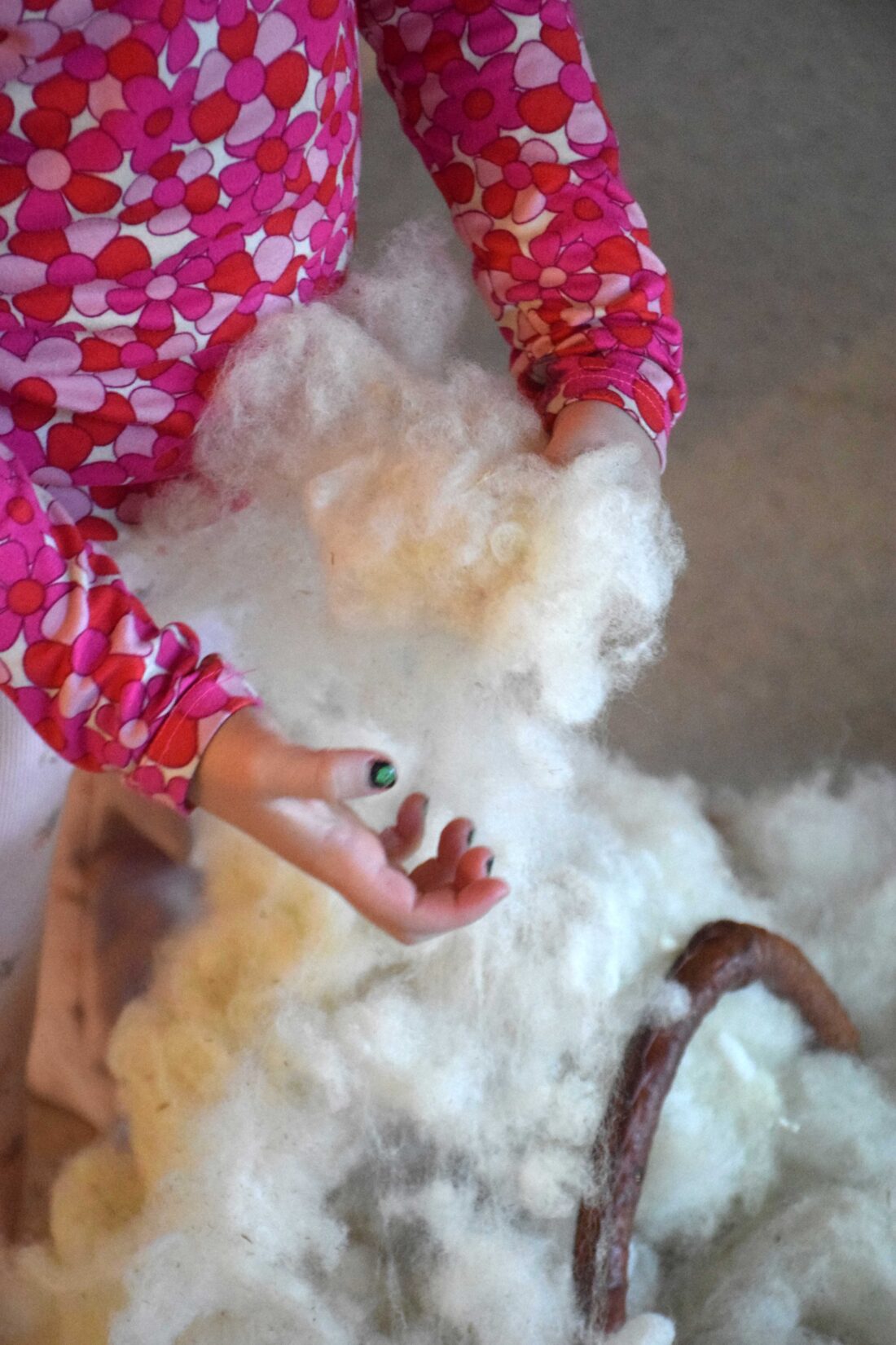 Vrijwilligers van het wolatelier kennen geen verspilling en verwerken alles. De geschoren vachten worden zorgvuldig gewassen met ecologisch verantwoorde middelen en daarna gedroogd door zon en wind. De kaardmolen reinigt en laat alle vezels dezelfde kant liggen. Zo wordt de wol klaargemaakt voor de volgende stap, het spinnen of vilten.